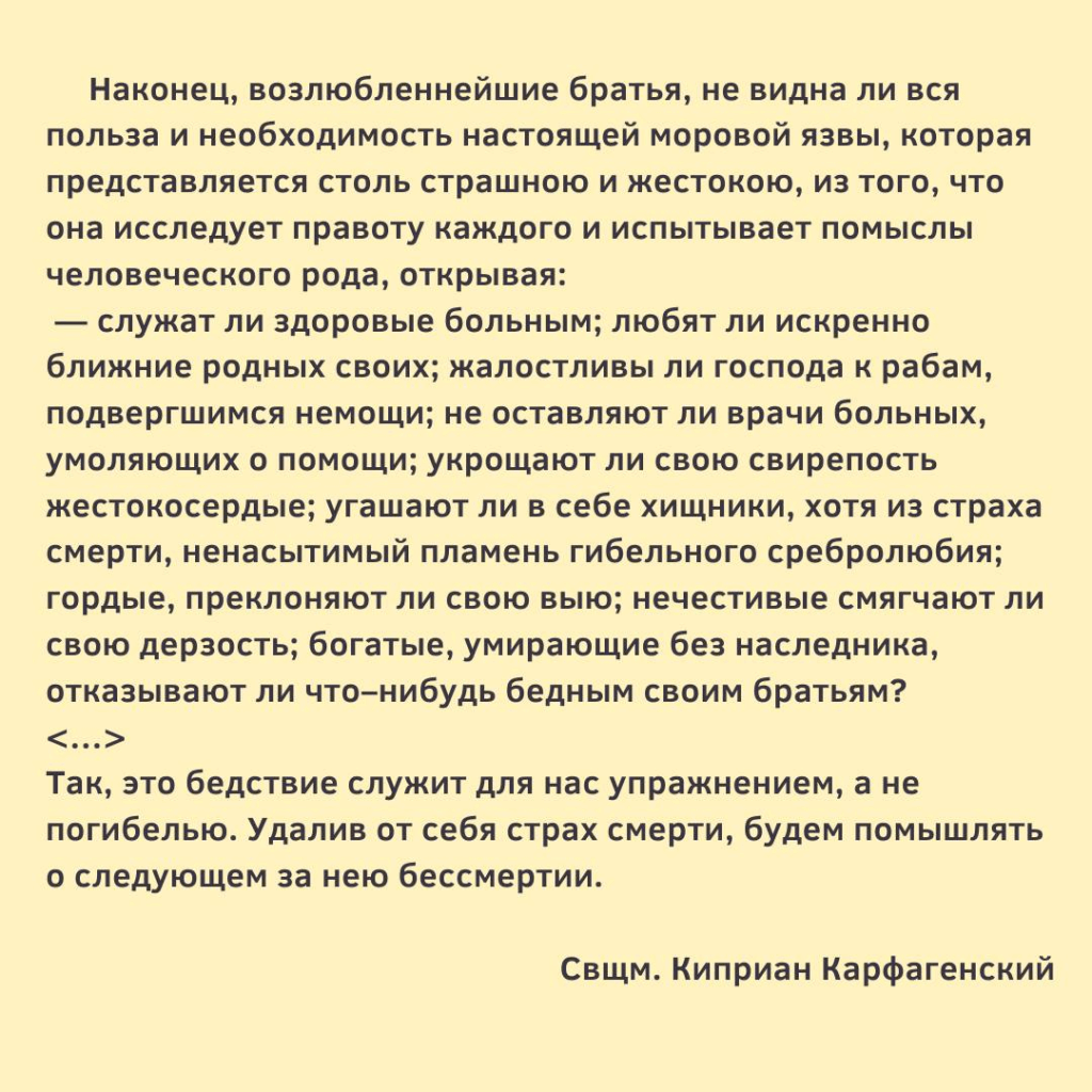 Например, вчера мы с Леонид Огороднов делали драму по свщмч. Киприану Карфагенскому и «Киприановой чуме», и пройдя через противостояние язычников и христиан, пришли с группой к тому же, о чём говорил сам Киприан (цитата на картинке — но группе мы её зачитали уже после того, как всё было сказано). И даже не удивительно, что написанное и пережитое в III веке, оказывается сейчас совершенно актуальным: «Нет ничего нового под солнцем» и всё такое…